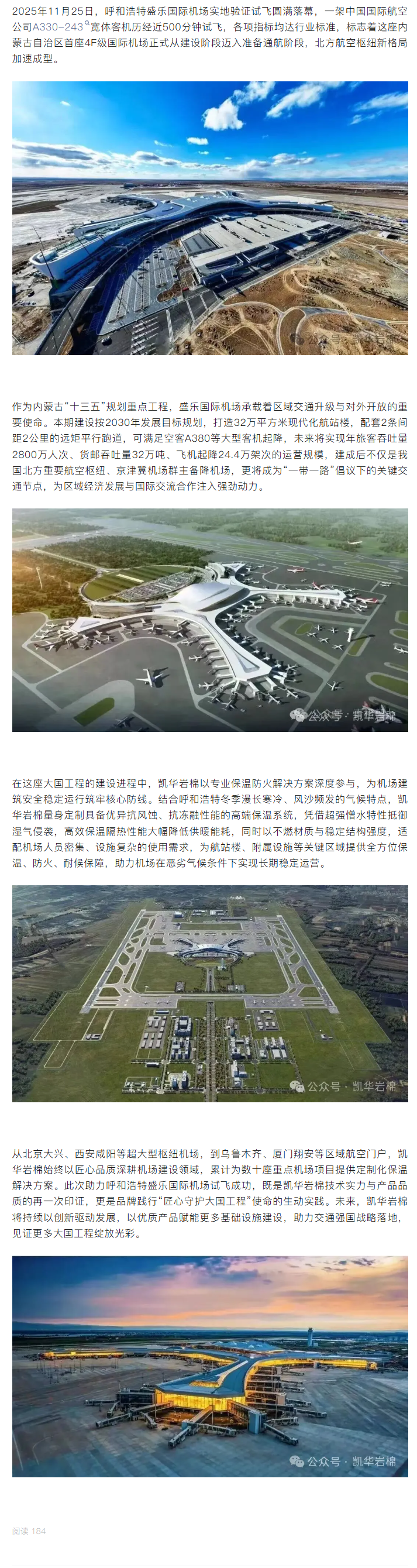 凯华岩棉助力l 内蒙古首座4F机场盛乐国际机场试飞圆满成功